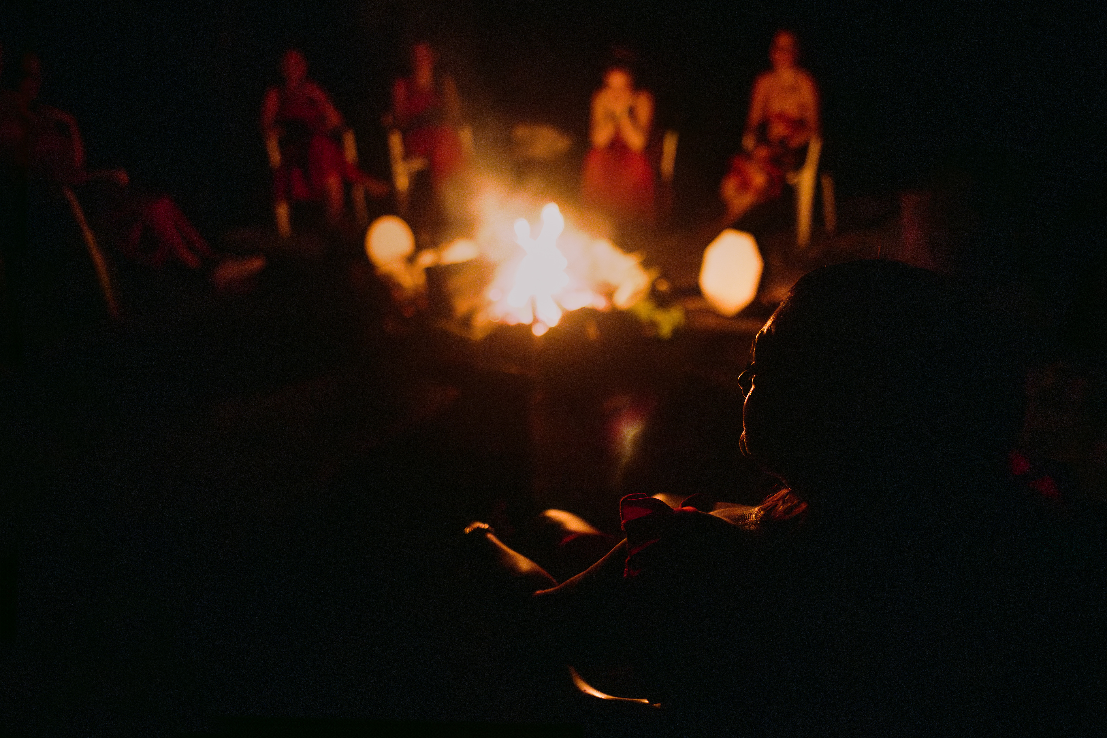 Pero en la segunda, cuando se empezó a sentir la confianza, cada una se expuso desnuda frente al resto de las compañeras, justo al lado de la chimenea, con una vela en la mano para hablar con mas apertura sobre su experiencia personal con su propio cuerpo.